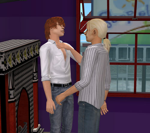 In default game, you could force them to interact romantically; you could even make them have a crush or love each other, but they would never have any autonomous romantic interaction, unless you succeed to revert Sam's gender preference to males, or at least making him bisexual. If Sam starts with a high gender preference for females, this means a lot of boring and somehow nonsensical work, like forcing them to flirt continuously for days.