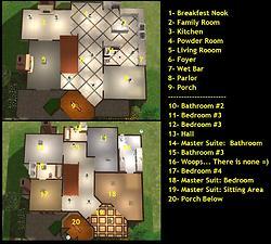 Large, but small Sims 2 mansion: 4 bd, 4.5 bth; NO CC