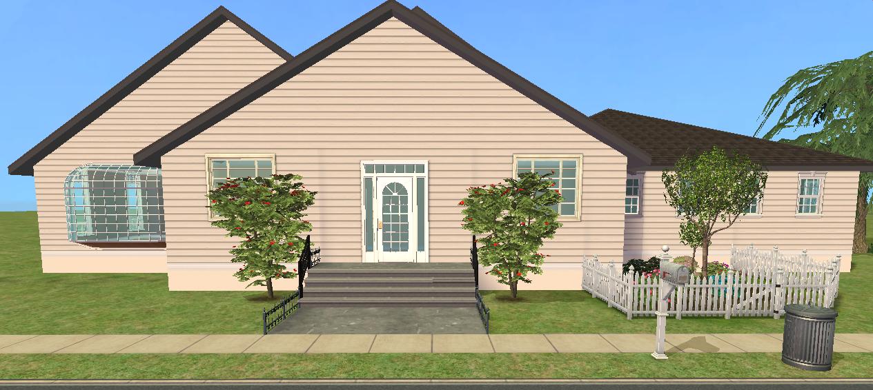 This house has nine rooms in total. You can see the attached image, titled Mom's House Layout Preview Labelled, to see what each rooms' intention was. It takes an in-game hour or less for your sim to walk from the front door through the entire house. Your sim will enter the house through the front onto what was intended to be a porch, but could be a foyer or entryway or whatever fancy name you want to give it. You'll then find yourself in a kitchen, with plenty of room. On the right is the dining room, which is attached to what was intended to be a laundry room; you could, instead, use it as a study if you so desired. Continuing right from the dining room is the first bedroom. You'll then find the bathroom on your left, which is attached to the second bedroom. Both bedrooms are the same size. If you continued through the second bedroom, you'd find yourself in the living room. There's a back door located in the living room. If you continue on, you'll find a room that is an attachment to the living room. At my Mom's house, that was the room all of us kids had our toys in and the computer. However, we always said it could be used as a third bedroom. =) There you have it.