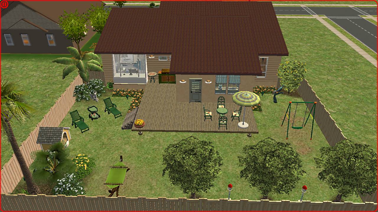 The back yard was particulary leafy so I tried to include that in my build by using plenty of plants and things for simmies to do