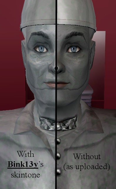 You do not need any kind of mesh for this sim to display correctly. The hat as well as the outfit use base-game meshes. However, he is packaged with maxis skin. He will still look exactly like the pictures, but he won’t be shiny. To make him reflective all over, you have to download the SimDroid V6.5(Metalic) Skin by Bink13y found here.