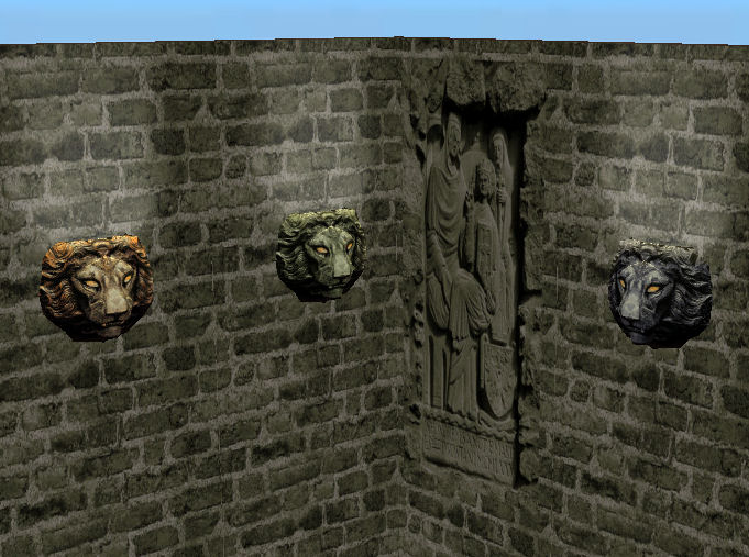 It's a stone Lion sconce lamp, comes in three colours, and the eyes glow. That's about it really ... pretty simple object. Looks good in castle hallways and dungeons and stuff.