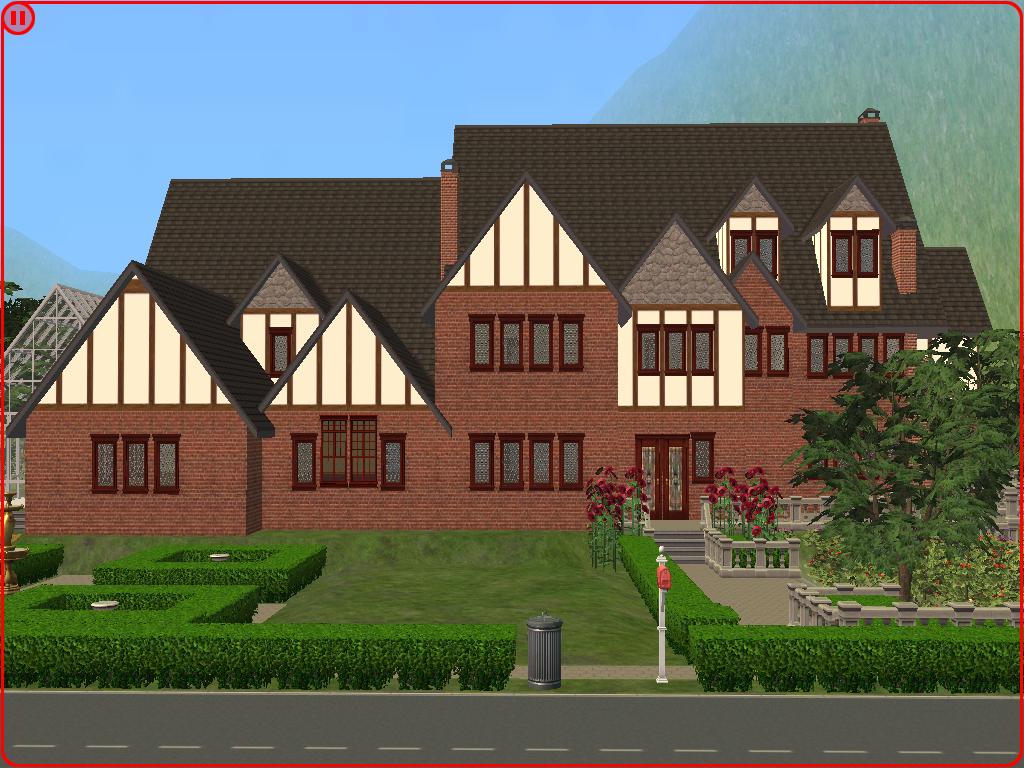 I have always loved Tudor homes, They have always seemed so warm and inviting to me. Here is my version of a beautiful Tudor estate so that your sims can live in luxury. This house is a composite of about 6 different Tudor homes I've seen that I have used for my inspiration.