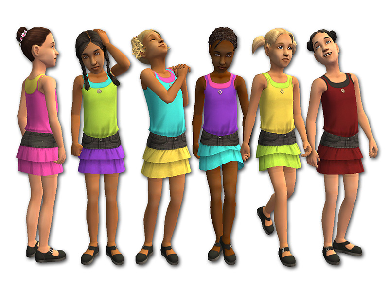 All the skirts come with black suede Mary Jane shoes. Working fat morphs are also included. Your Sims can combine these pieces with Maxis clothes, too, for even more options.