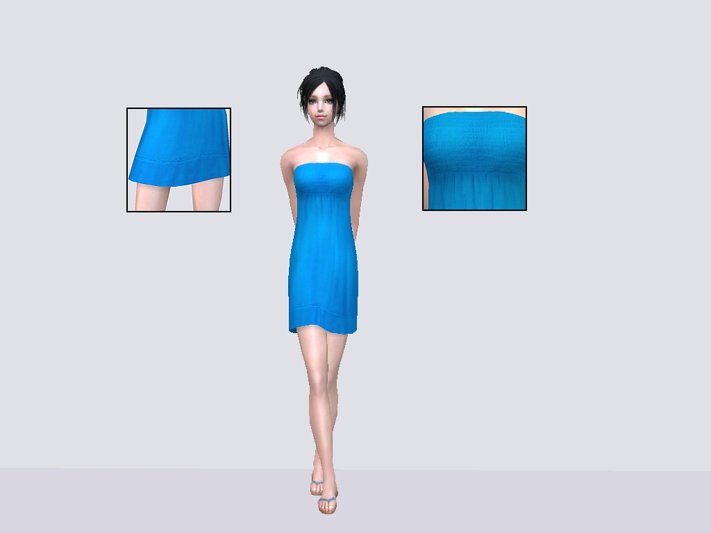 I wanted some cute summer dress for my Sim, so I made myself these and I decided to share. It works as maternity clothing as well, you only need the 'Pregnant Sims Wear Any Outfit' hack by Squinge, which you can find HERE.