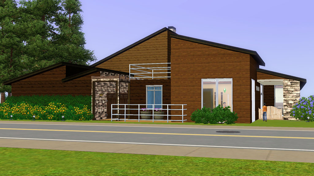I've changed both the interior and the exterior to suit the game better.It has 1 master suite, 2 bedroom, 2 1/2 bathrooms, 1 excercise room, open living and kitchen, a dinning room, a study, a nusery, a courtyard, swimming pool, 2-car garage, a garden.