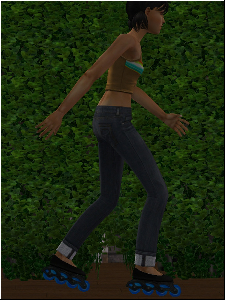The textures are Maxis with a touch of photo skinning. The shoes are threehundred's recolor though. I couldn't get a black shoe as good as hers. The rar includes a tucked and untucked version. All files compressorized and clearly labeled.