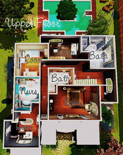 This house is unbalanced, has two environments and six rooms upstairs. You are free to eliminate two or one room. If you have a numerous family, one of the bathrooms was completely furnished. The master bedroom has its own bathroom. In the lower floor, you have a studio, the dinner (which you will need to add two chairs, I forgot) a living room, and the kitchen.