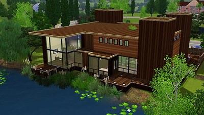 Mandrakis Residence is a home belonging to Dr Mandrakis, his wife and his 2 children. It is a very modern, river front style house, built on 2 levels so there’s plenty of space for sims to live freely. But it doesn’t stop there…across the river sits a guest house that is plenty spacious for visiting guests to live in…or sims who love their privacy!