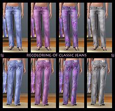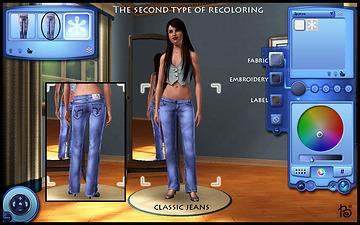 The classic jeans also have 3 recolorable parts: you can recolour separately a fabric, a label and an embroidery