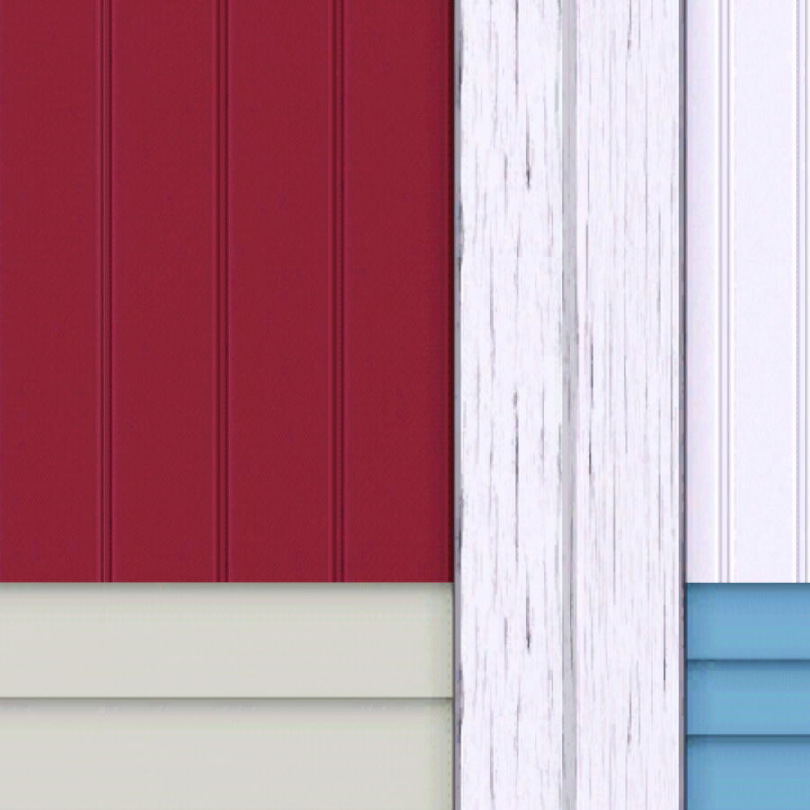 The horizontal siding is pretty much like the EA wood siding style but with less clunky shadows. The vertical version is a tongue-and-groove kind of thing, also modeled after one of the existing styles. The important difference here is that these are patterns, not wall styles, so they can be applied e.g. to the barn style walls that I use on pretty much every house I build.