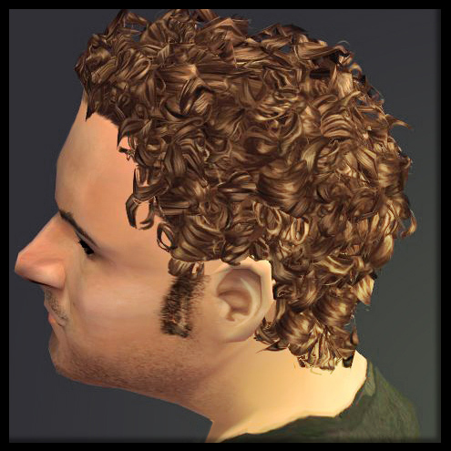 I attacked the curls a little different that HP (Cherub Curly Hair is HERE). The idea is that it should be looser and the curls less--and I mean no insult here--noodley looking. It's just a little bit different curl style. This is such a genius mesh. Limiting, but genius. I don't have as much control over the general shape as I would have liked, but I was able to make it look fuller up close. And more realistic, which isn't necessarily what I set out to do. I just enjoy detail too much, that's what I get.
