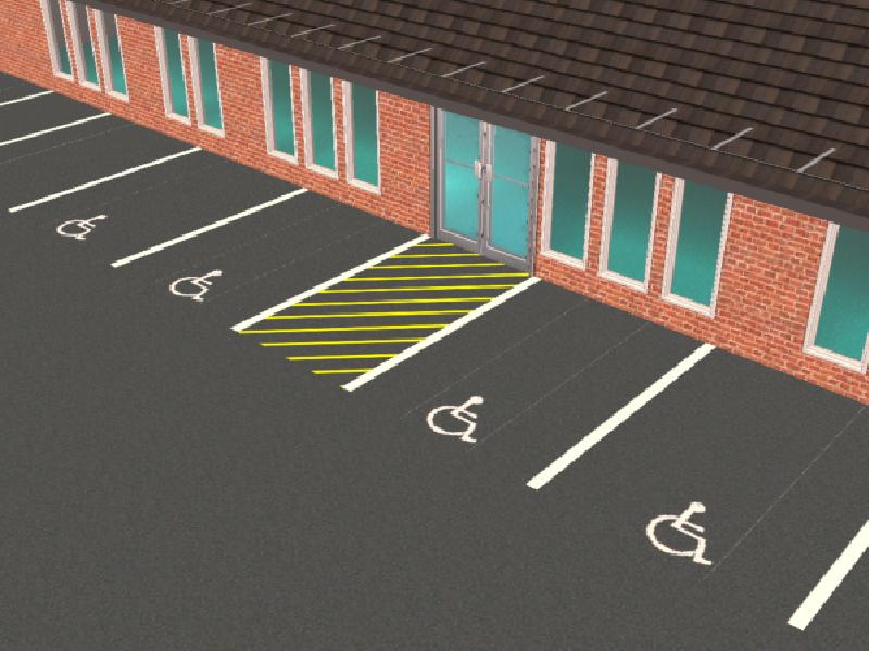 Handicaped spot, White Parking Lines, And No Parking Zones. Each is 20 Simoleons.