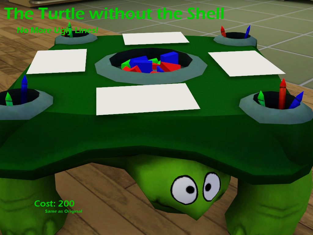 He costs 200 (Same as original) and is in the children sections (Again exactly the same) There are two versions, One is a default which will completely overwrite the old turtle and a normal version which will not overwrite.