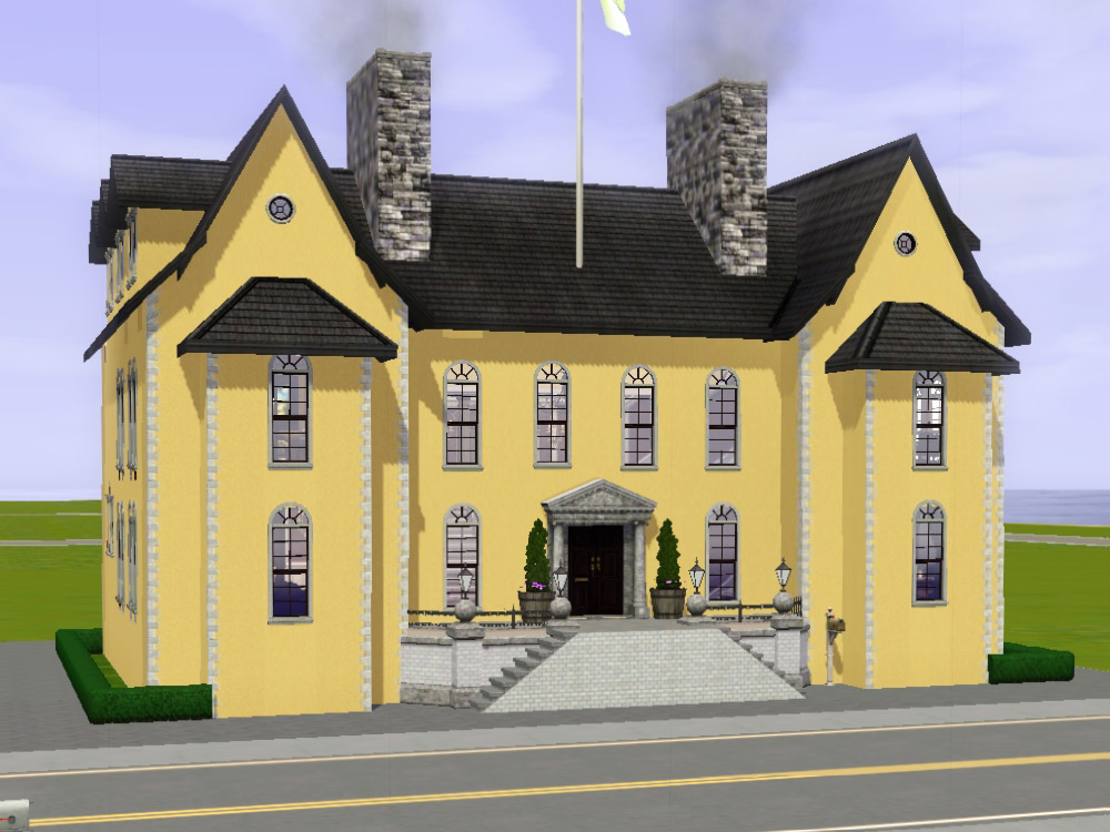 Built on a 25x20 lot, should be easy to expand with a park/square/garden in front and/or back. This could be usd as a community lot as well, I would think – like an expensive hotel or a university building.