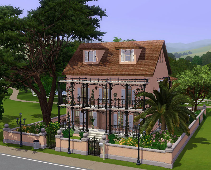 I have in this package 3 new meshes. A fence and two New Orleans styled fence tops: one two tile and one three tile. None of them are very complex, because, frankly, the only reason these objects exist is to work with this specific house. That's not to say they wouldn't blend well with another house. I just wasn't particularly interested in making these complicated objects. The fence has no channels.