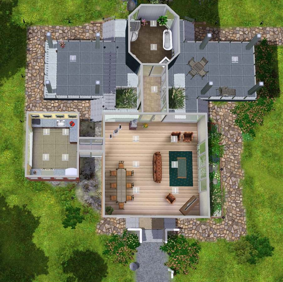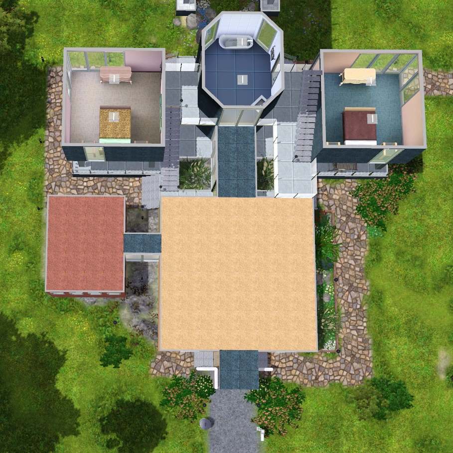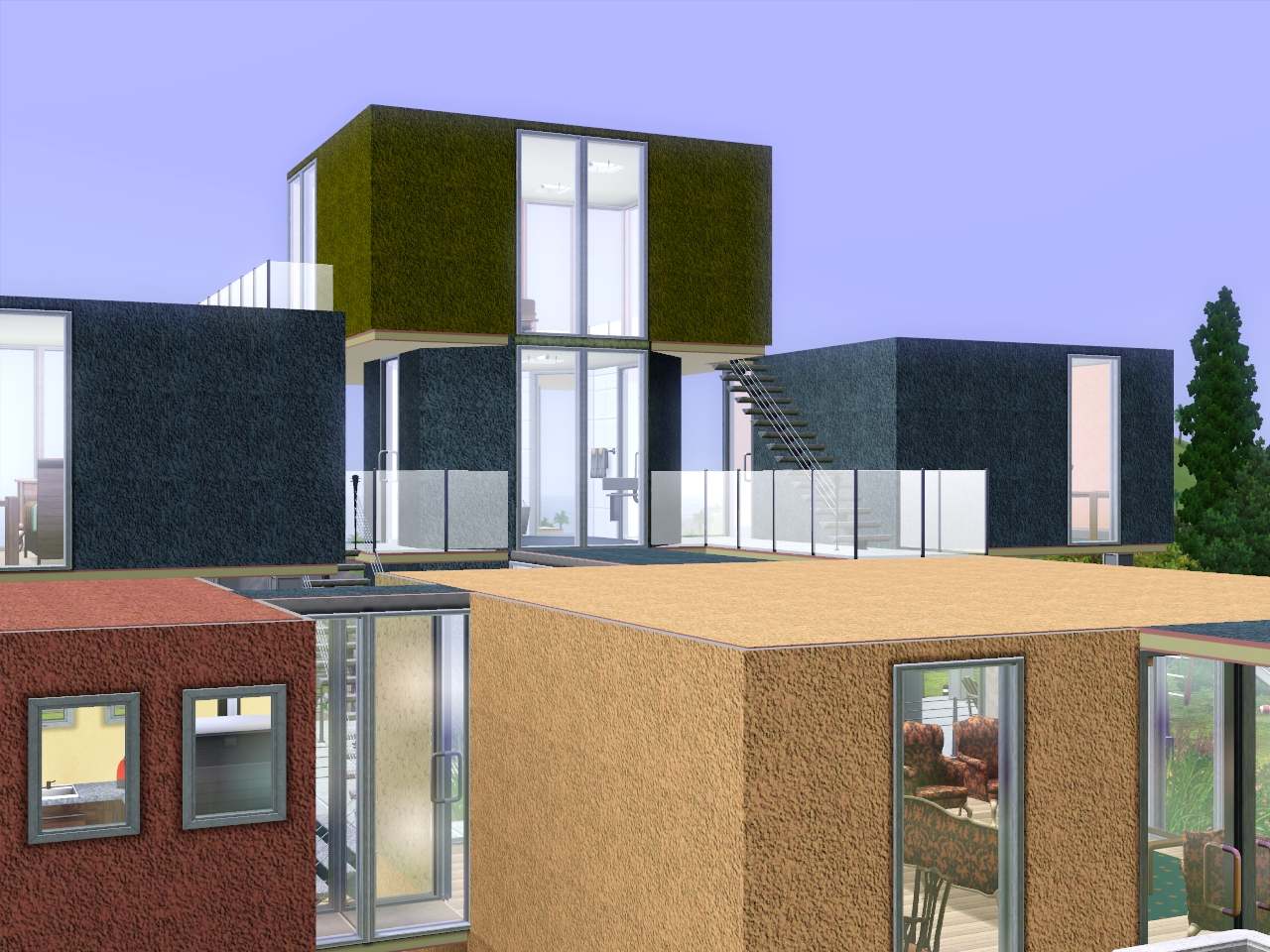 A very important base had been "easy colors", clear lines and that the place is still very functional for living (and gaming)...it should be a house where I really want to life in - and now I think that the result represented in this "crazy" design does exactly fulfill this requirements...kinda art of living in colored boxes on different levels.