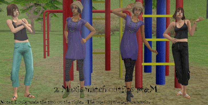 The hair is by Maxis, no meshes needed for the outfits, because they are by maxis also.