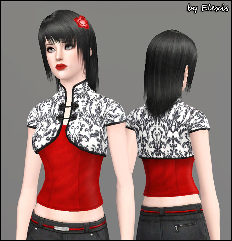Here I am (omg, not me again!) and this time I present to you a "Mandarin Style" jacket for female Sims! I made it to match my AniMe Hair, but it looked so good with any other style that I decide to share it
