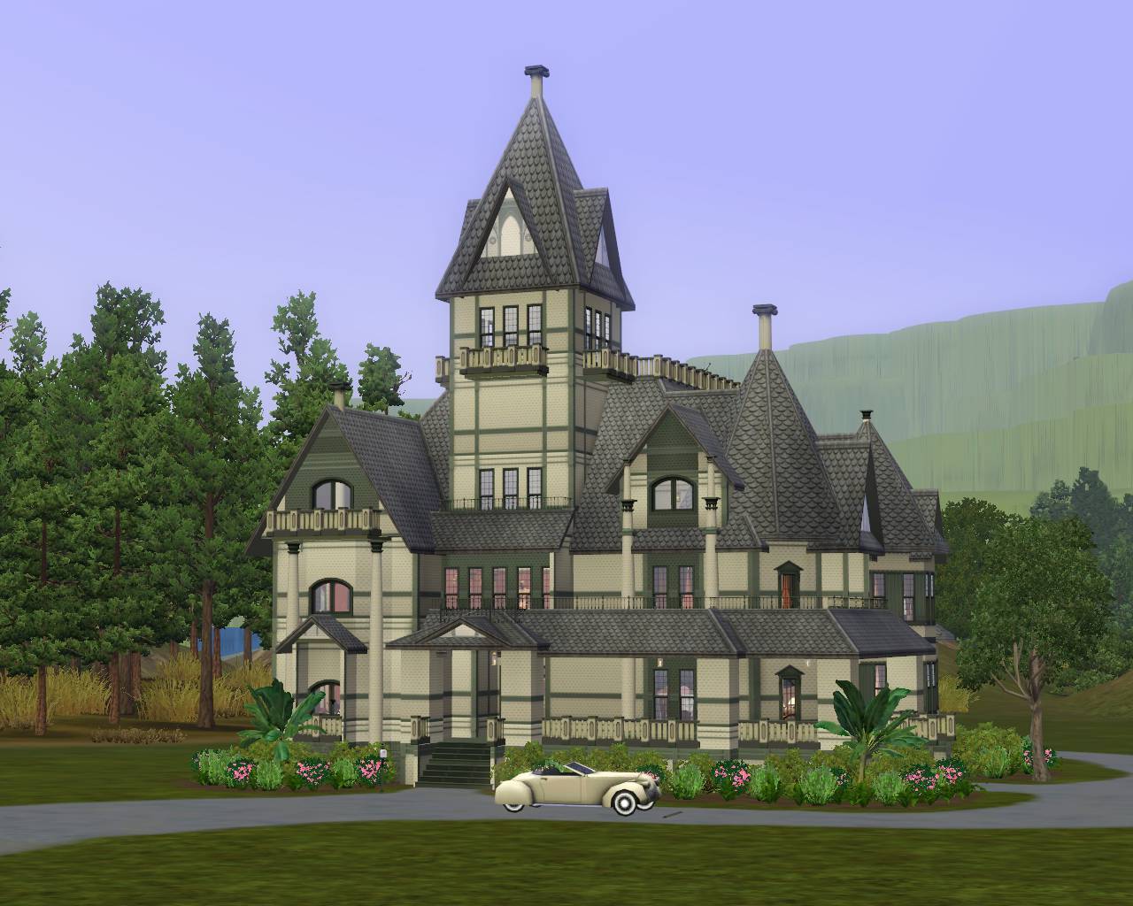 I also put a carriage house on the lot because I thought it would be rather sad for a sim to sped over 400,000 simoleans and not get a garage .