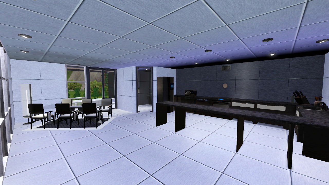 The home is spacious and highly modern, with a large steel roof covering the entire home, skylights giving extra light and a large glass floor above the pool. It is fully furnished with all your Sims' needs, however there is plenty of space for personal touches.