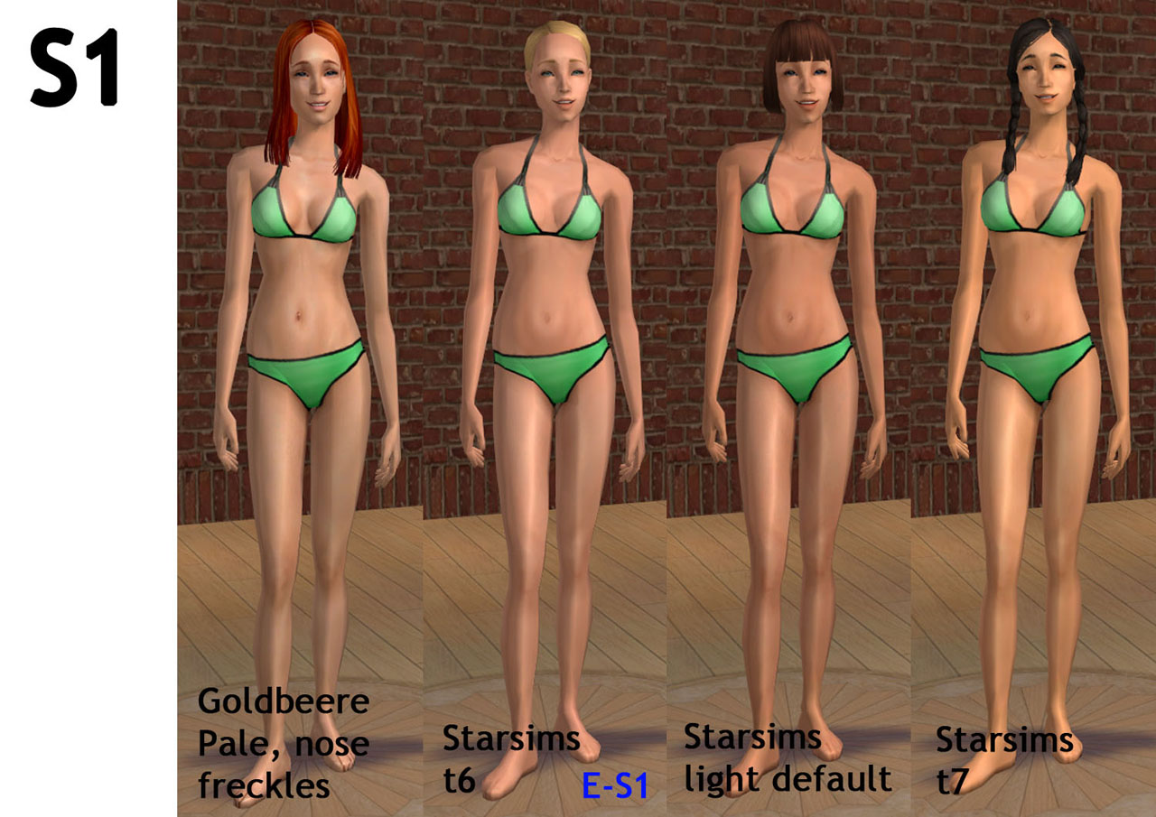 Starsims for the amazing skins. The ones I have used are found here under Downloads>Skintones and are the first 5 downloads which appear on the page.
