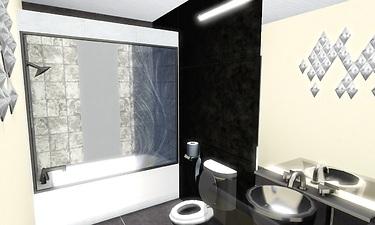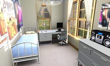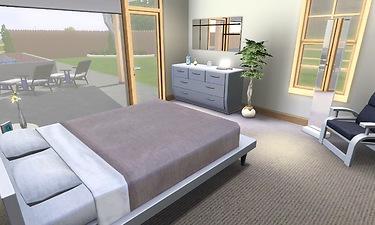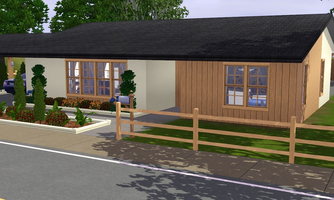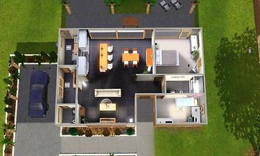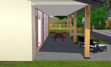 The house comes with an open floorplan and big windows to let lot's of lights in, with 2 bedrooms and one bathroom there's space for 3 Sims. On the left side of the house you'll find the utility rooms (WC, laundry)