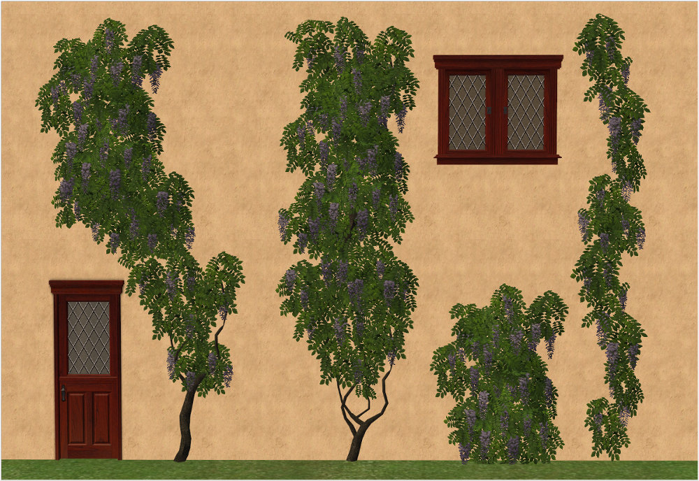 Here's five wisteria plants from the Sims 3 store world, Dragon Valley. They look nice all by themselves or you can puzzle them together and have the vines climb multiple stories.