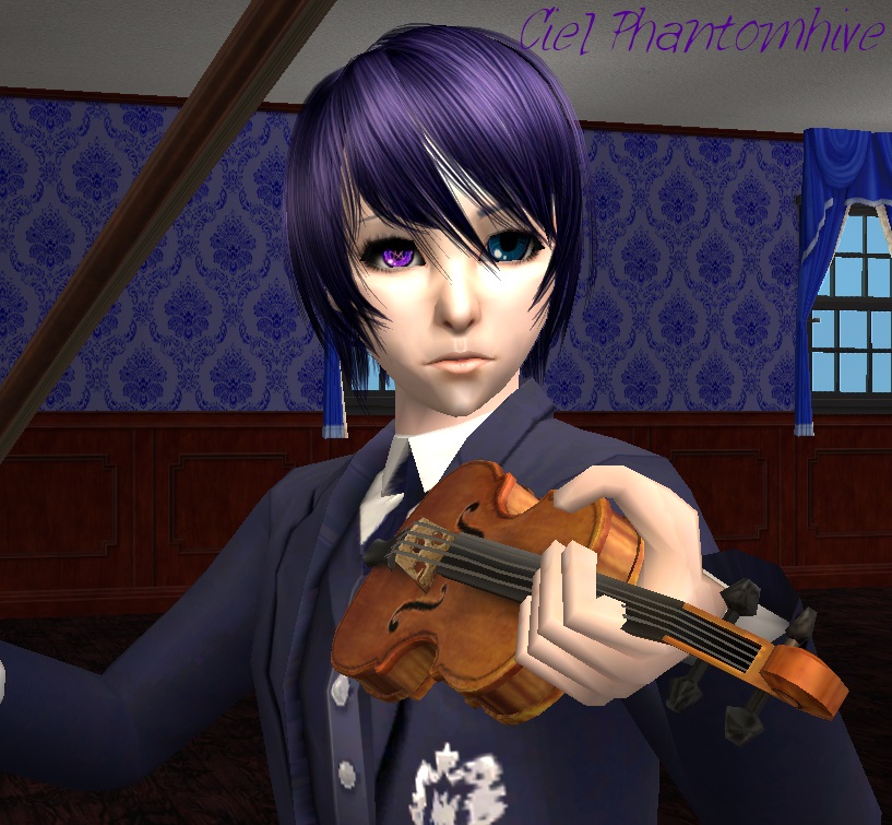 Go get the "Different Eye" mesh or the blue eye won't appear on Ciel! Also get the hair mesh by CoolSims or his hair won't appear in game! The outfit took me alone two hours to get all the colors right. It really doesn't look like much, but the buttons kept trying to turn rainbow and the tie refused to be anything but neon pink...(This is what happens when you use Paint.net on a computer that's overfilled with pictures...At least, for me...)