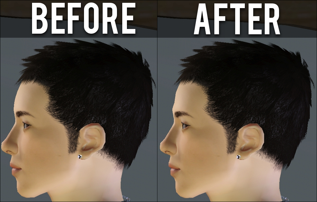 Example of Ideal Usage (Subtle Fine-tuning) As you can see, this mod creates a more flat and hollow indentation along the forehead. Nothing fancy, but I felt I needed it, so there you go lol I wanted to pull down