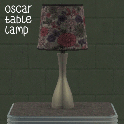 . I hope you like how it turned out.This is a recolor of mustluvcatz's Oscar Table Lamp, which you can find here: http://modthesims.info/d/518466. I have included the mesh in the download, but you should still check out the recolors mustluvcatz made.