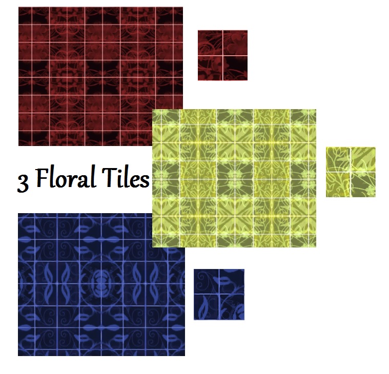 Set of 3 Flowery Tiles for your Bathroom/Kitchen Floors