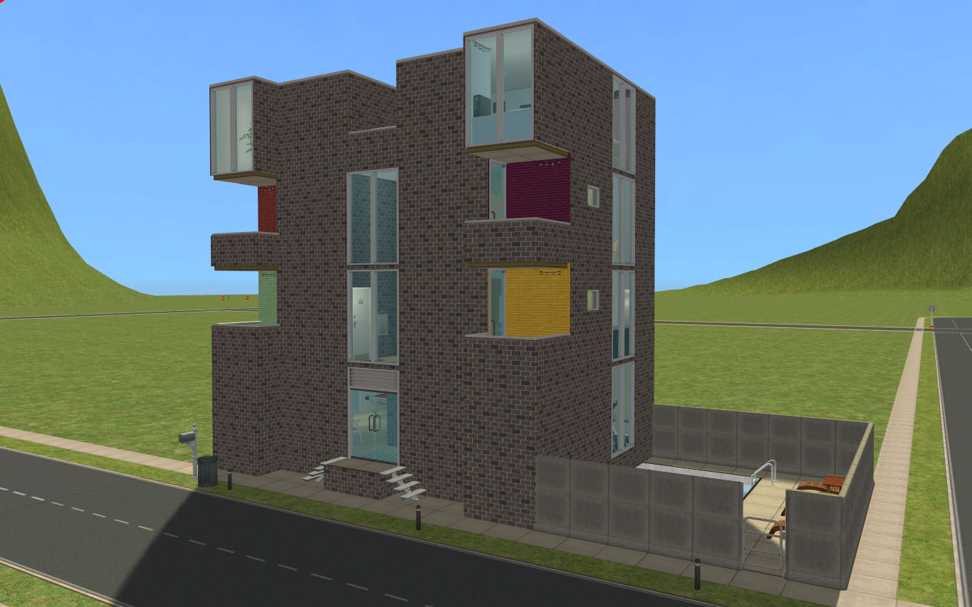 Downstairs facilities include gym equipment, social games, snack machines, a computer, and a pool. There is no kids' corner, since the apartments weren't designed for sims with children.
