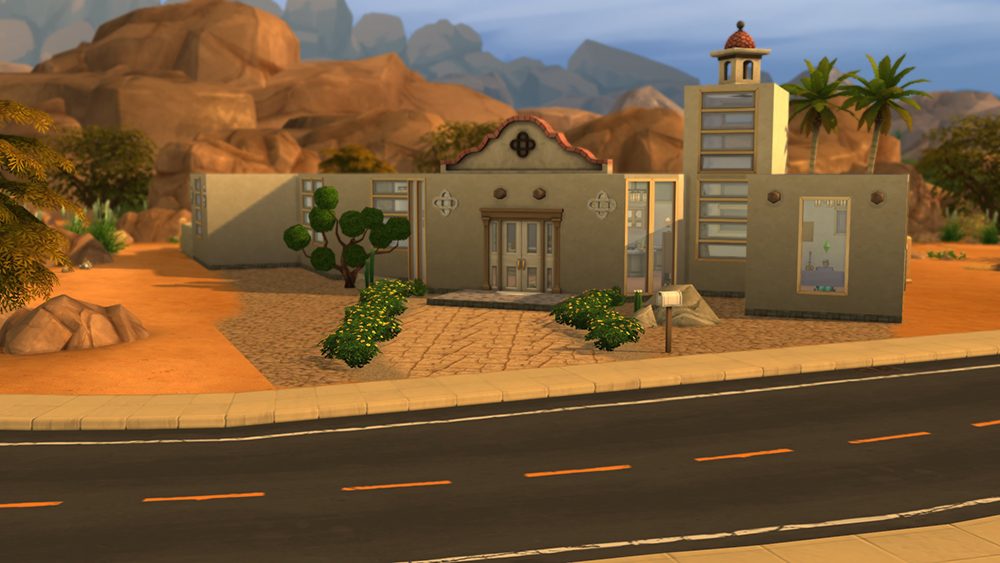 This isn't the perfect recreation of the style however, since Pueblo houses have massive, rounded edge walls, which can't be replicated in game. It works best at Slipshod Mesquite lot.
