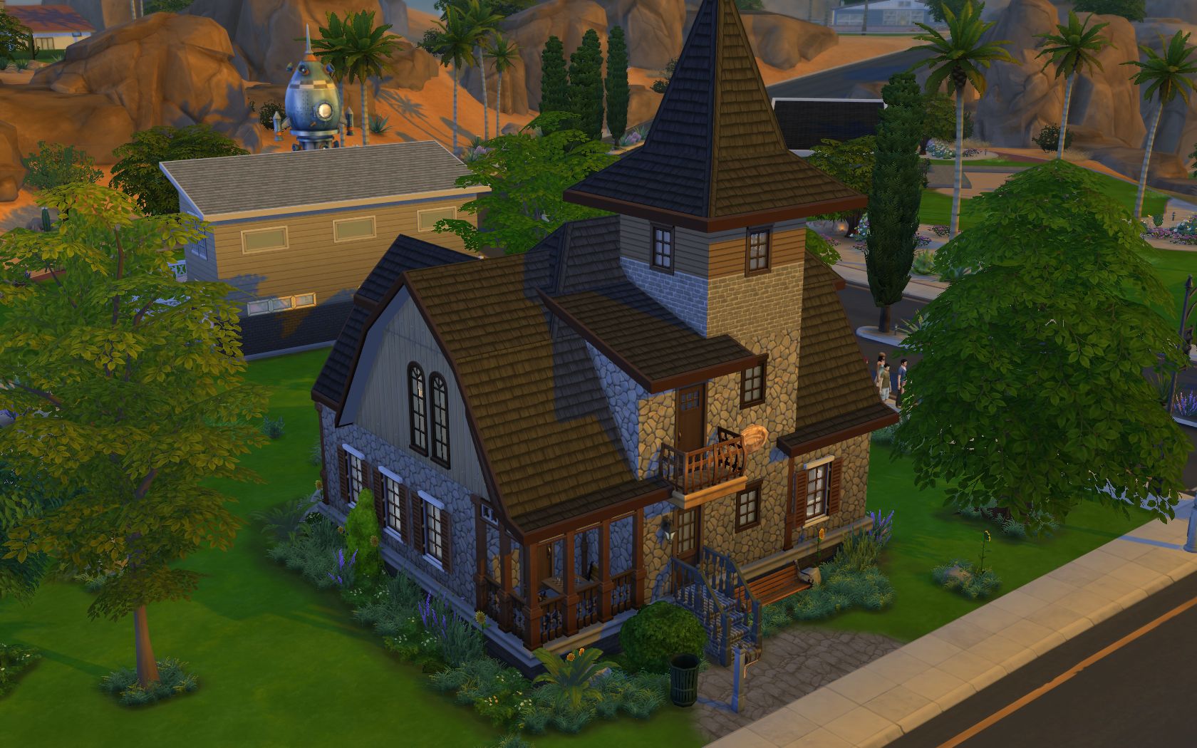 The exterior is pretty accurate, interior... not so much. That's mostly because of stairs, which in Sims 4 take a lot of space. Sadly Sims 4 can do only "straight" stars thus far, and that messed up the layout, so I had to get pretty creative.