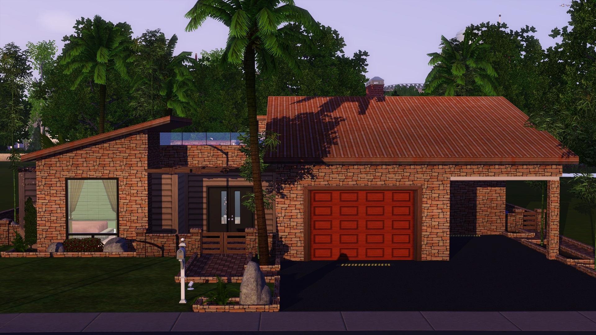 The house is built for the desert, but as you can see, it can be placed in more lush environments as well! The house has three bedrooms, a study, two bathrooms, a living room, a kitchen and a garage + carport. It also has a large pool and a rooftop patio! Need I say more?