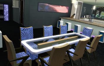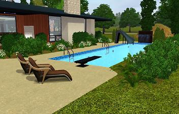 Island Paradise (only a few deco, but I used the black steel roof pattern, which I think is important to the look of this lot)