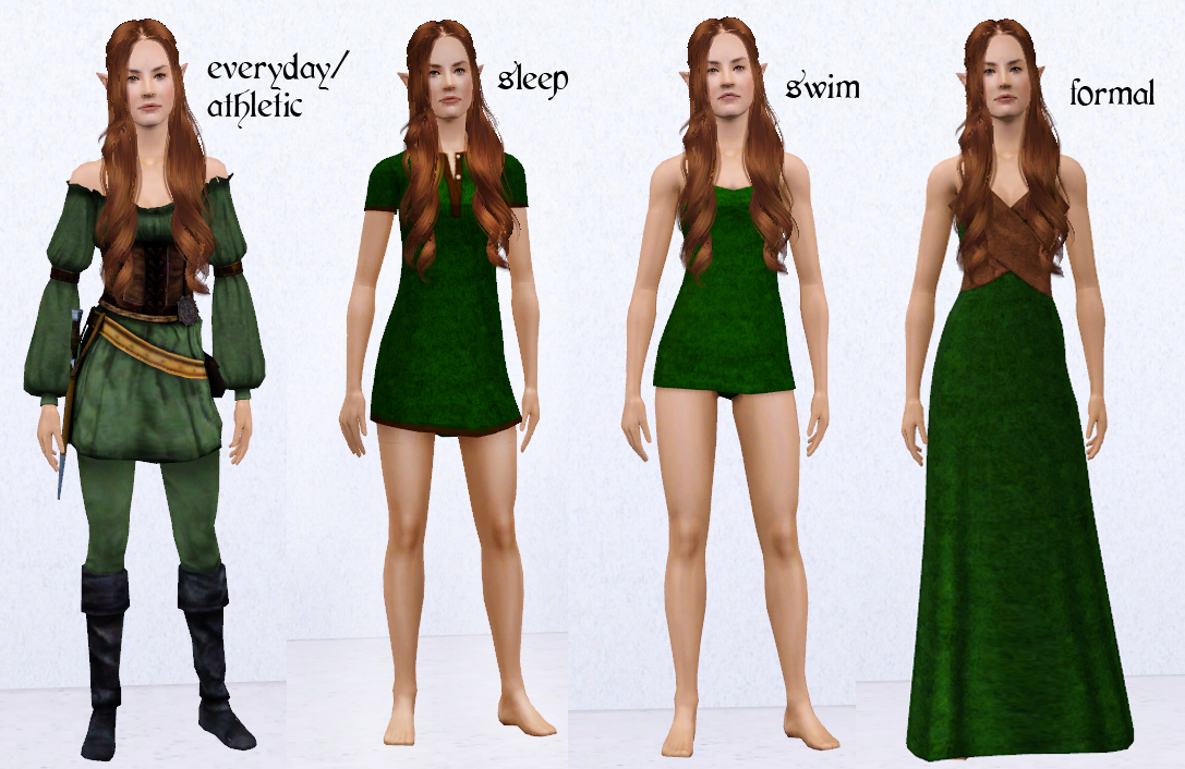 Assassin outfit conversion by Cocomama Click the third link in the post, then pick the file called Body Assassin Green from the side menu, for Tauriel's everyday/athletic outfit. Sadly you will need to register for this, but it's free. Also feel free to find something even more suitable in the future