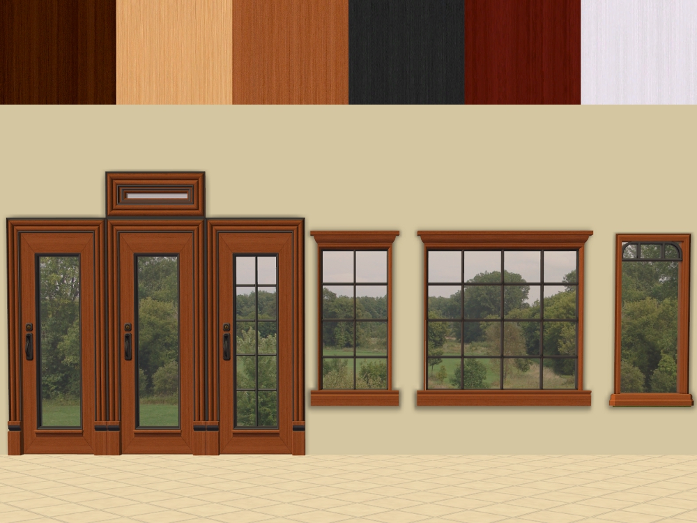 Open For Business Abiding Elegance by Durabliss, Belhooven Maroo Window, Fenetre Fanastique, Tallish Transom, The Mullionaire, The Safe-T Arch in the usual AL wood colours. I also included a glass recolour for each door and window.