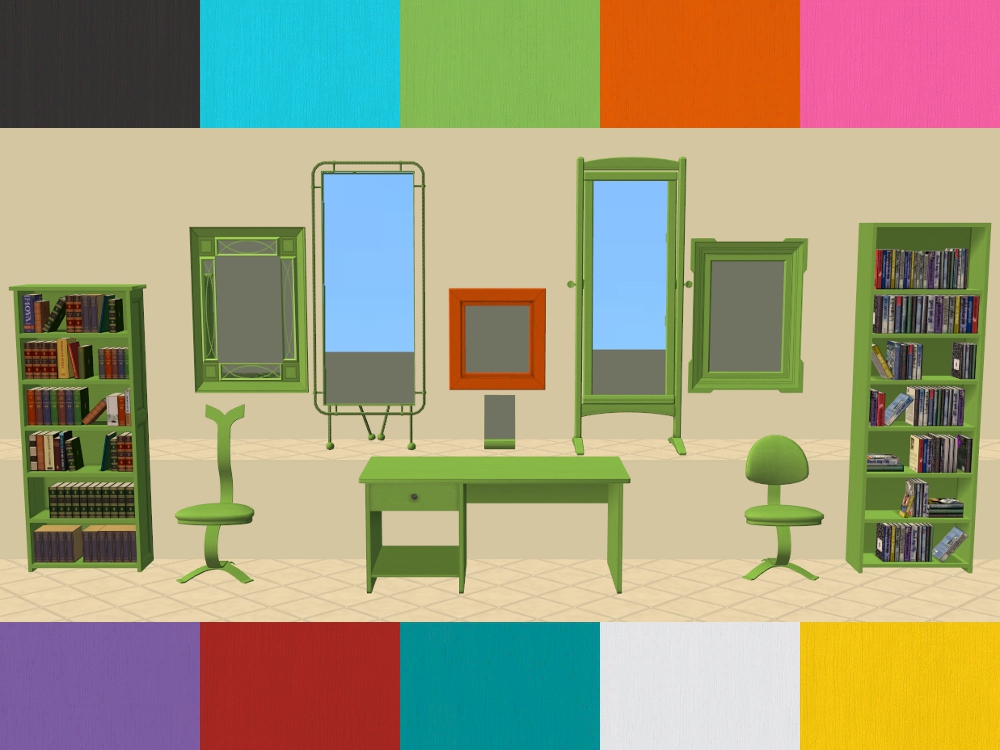 More Recolors of Bookcase, Desk and Chair matching other Basegame Furniture