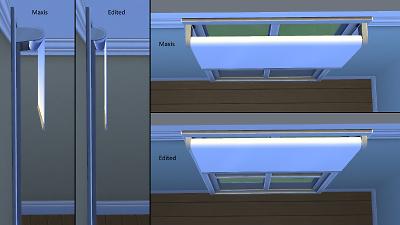 This download comes in two flavours, one containing a Maxis override for "Simplicity Shade" and one adding it as a standalone object called "Simplicity Shade (Thin)". All blinds come in the 8 original Maxis textures, which have not been altered.