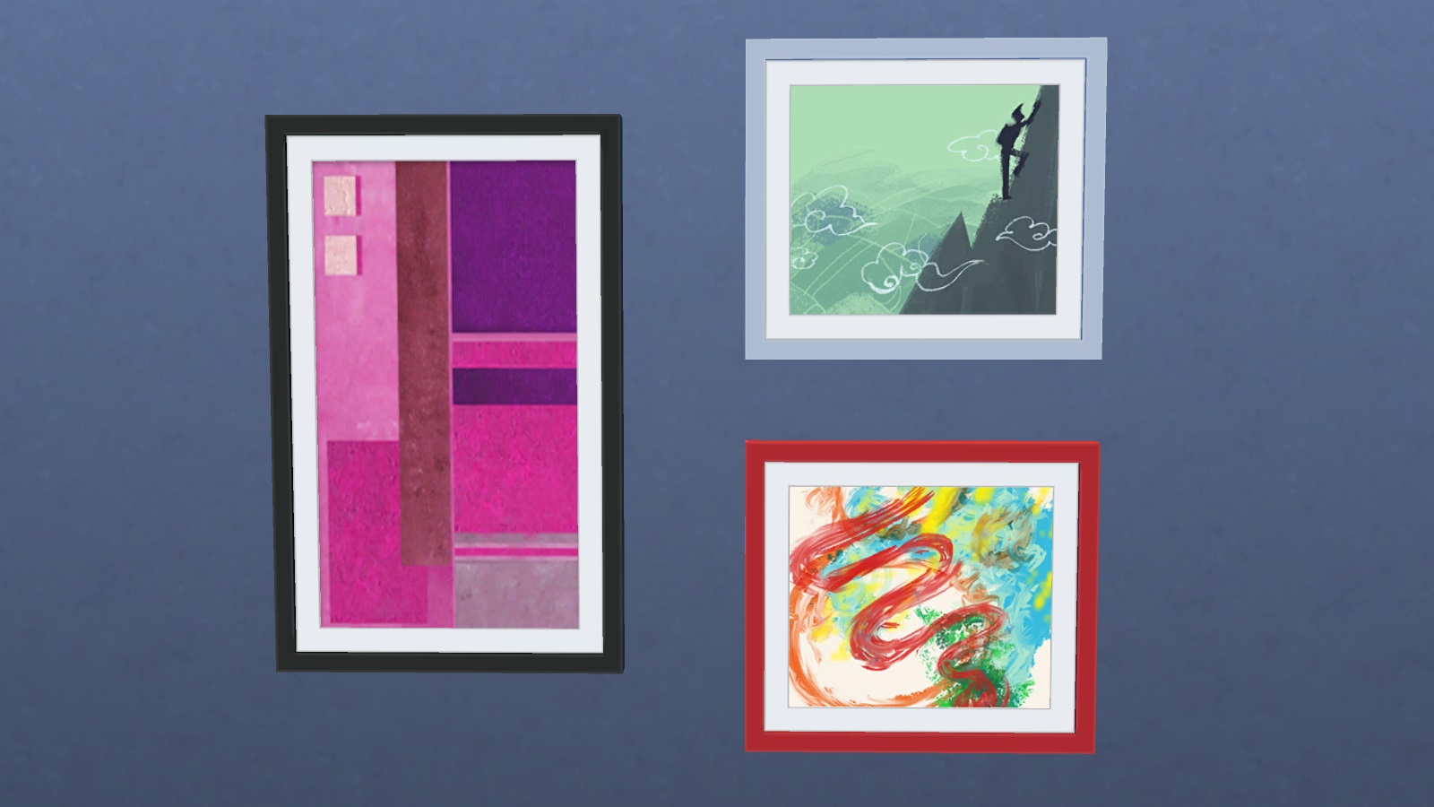 I really like to display the artwork of my sims, but I grow tired of the same black frame. This new mesh offers a little more colour variety while also adding a matte to the painting. This mod will not affect the default Maxis frame in any way, it is a set of new objects that can be found in Buy Mode - Objects by Function - Decorations - Paintings and Posters. This set contains the small, medium and large "Funky Frame" in 10 different colours (pulled from two different Maxis mirrors). The frames also offer a +2 environment score. Purchase price is 50 simoleons.