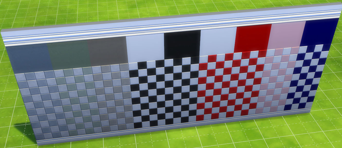 | Several variations of the Basic Dark with White Trim walls with a Checkerboard Backsplash.