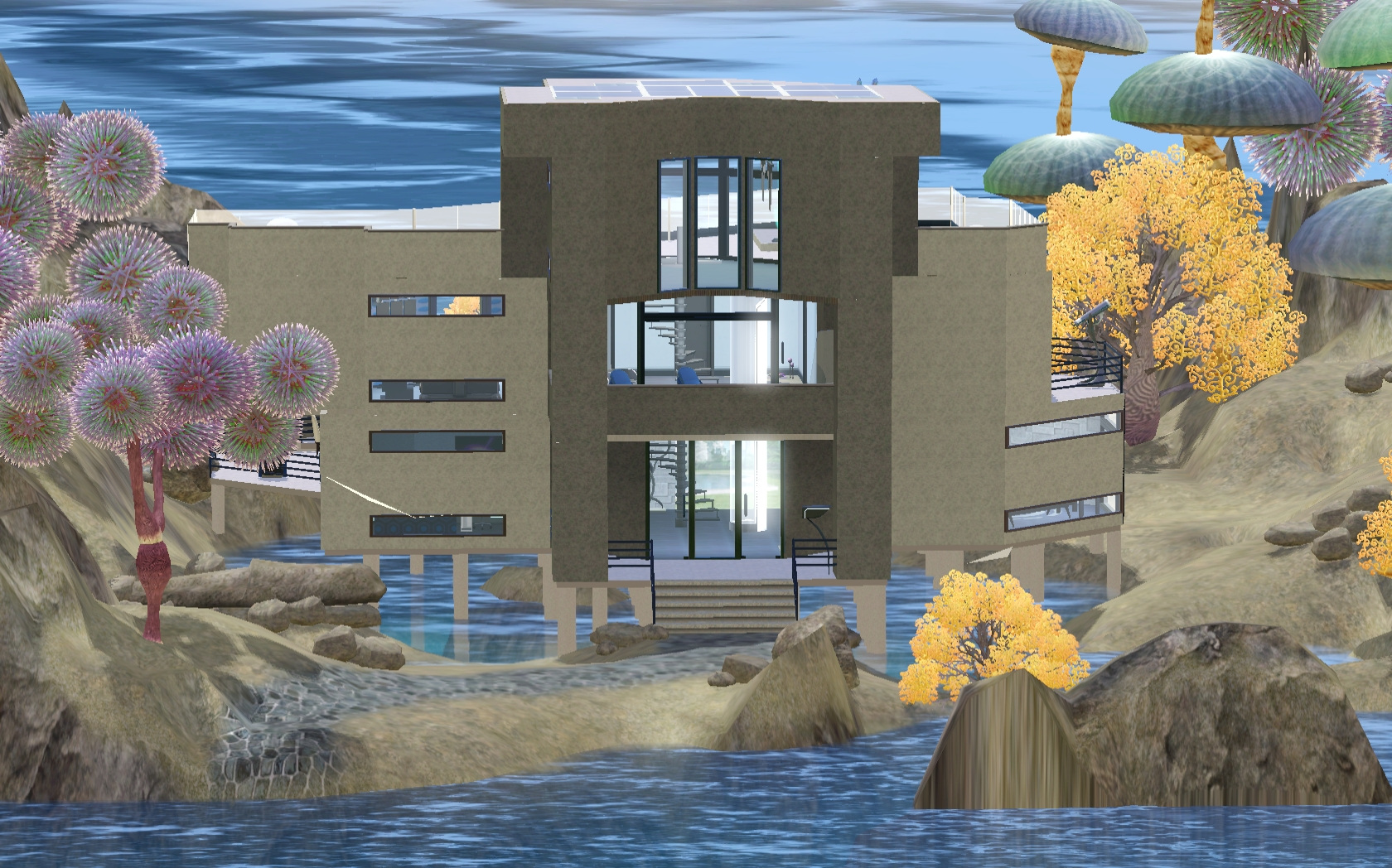 Island Paradise (one door, helpful to have for sims to have an easier time getting to the lot, or you could place it on a regular lot, and fix the terrain to fit)