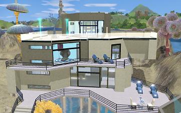 I added a few small extra buildings in the back to give it a spice of something different. They aren't super important rooms, so your sims aren't always going to go over there. Though, the small room is a pet room, so assuming your alien has a super odd looking pet, then they will spend a lot of their time there!