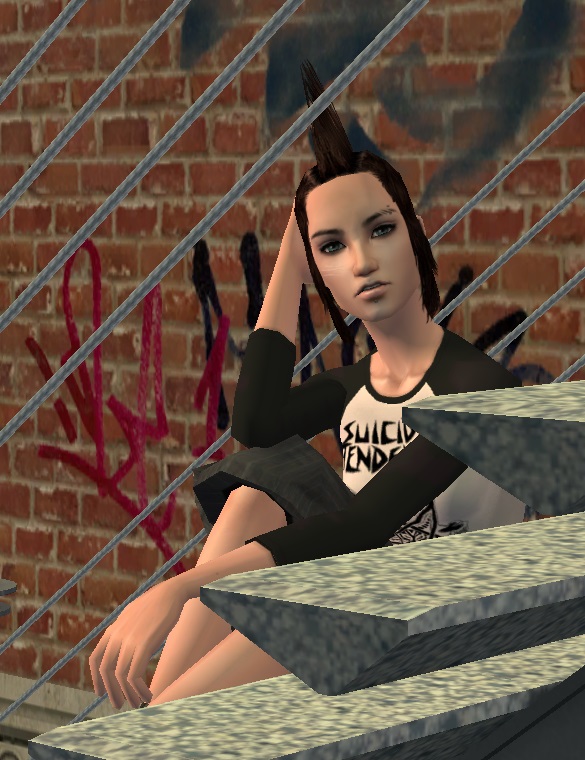 She is kind of a tomboy and her interests include skateboarding, painting, video games and of course music! She really loves all kinds of punk and metal music! Some people might think she looks a little intimidating because of her looks, but she is a really nice girl and loves to meet new people! Hope you will get her a nice family and friends!