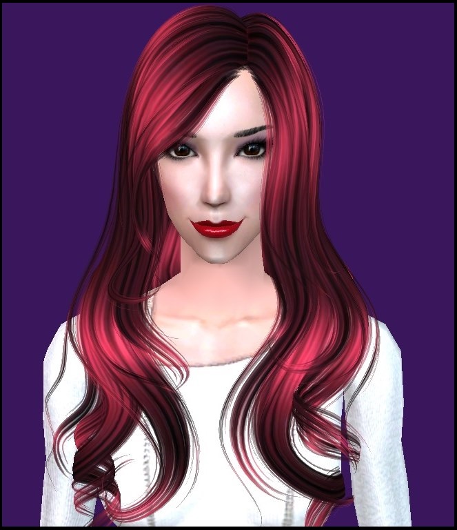 This one I call KatColor, in honor of my friend, Kat. She dyed her hair this color once and it was fairly unattractive (well it's brown now), but I still remember the color and was able to recreate it in this hairstyle. The original was actually brown, but I messed with hue sliders and made a maroonish-pink. It also looked very oddly sharp in the original, so I blurred the texture a bit. It looks normal in-game, but the texture file itself looks odd. Idk.