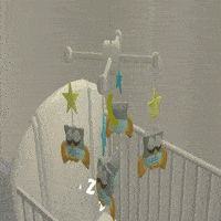 Original non-musical mobile updated to rotate in reverse and at a slightly slower speed; the same as the new musical mobile.