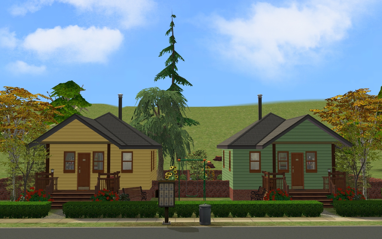 When I played this lot I never liked when my sims are constantly going from house to house when they something need it in them. Originally lot is designed to have two separate flats but in residential lot for me it did not make sense. Because of that I decided to remodel this house in apartment lot and now two separate houses make sense.