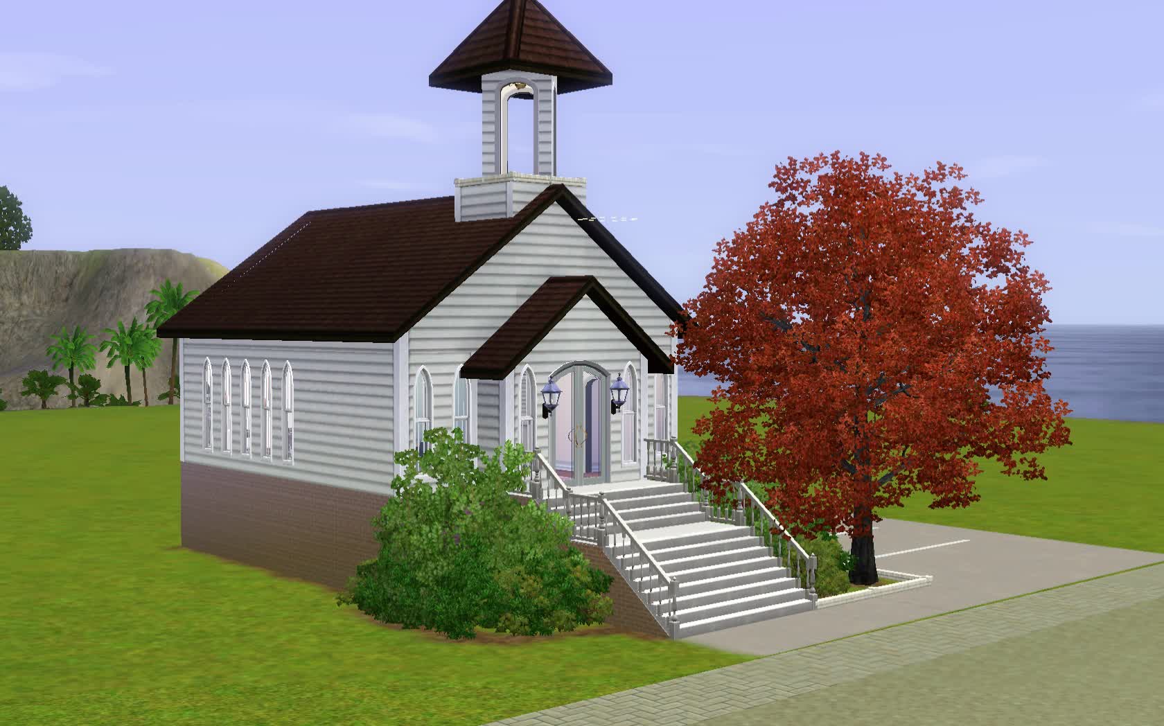 This church is just a basic church with entrance, sanctuary, bathrooms and a basement to hold parties. This one is set up to hold a wedding! There are a few store content items used: